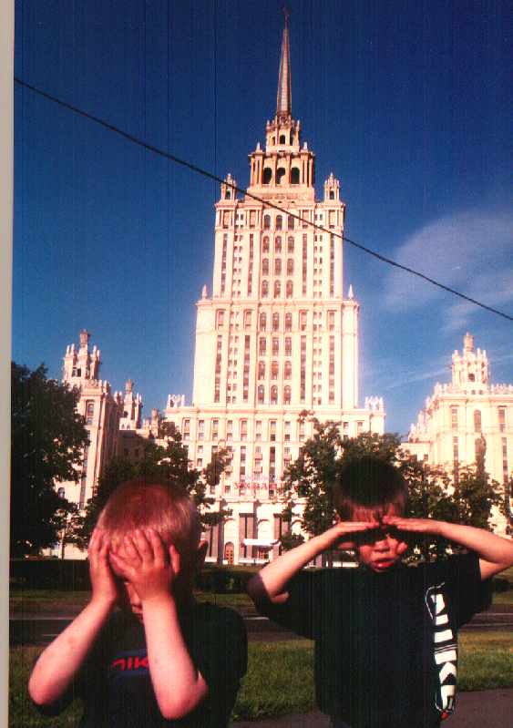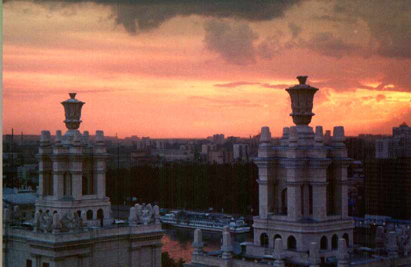 Picture taken from our hotel room in the Ukraina looking over the Moscow skyline (taken at about 2am local time)